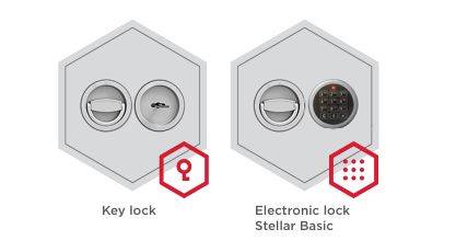 - Zaključavanje: Mehanička sigurnosna brava s 2 ključa ili elektronska na baterije
